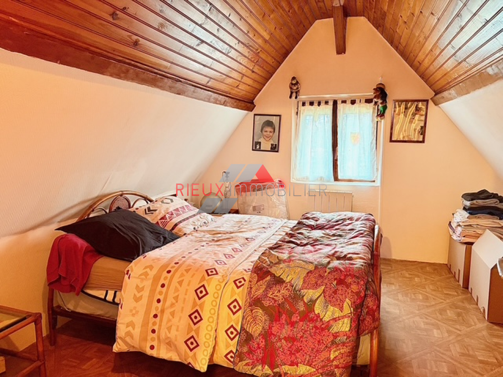 À l’étage, un palier dessert une chambre supplémentaire.