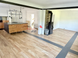 Au RDC: entrée, cuisine aménagée ouverte sur un séjour salon avec poele à bois, salle d'eau, WC.