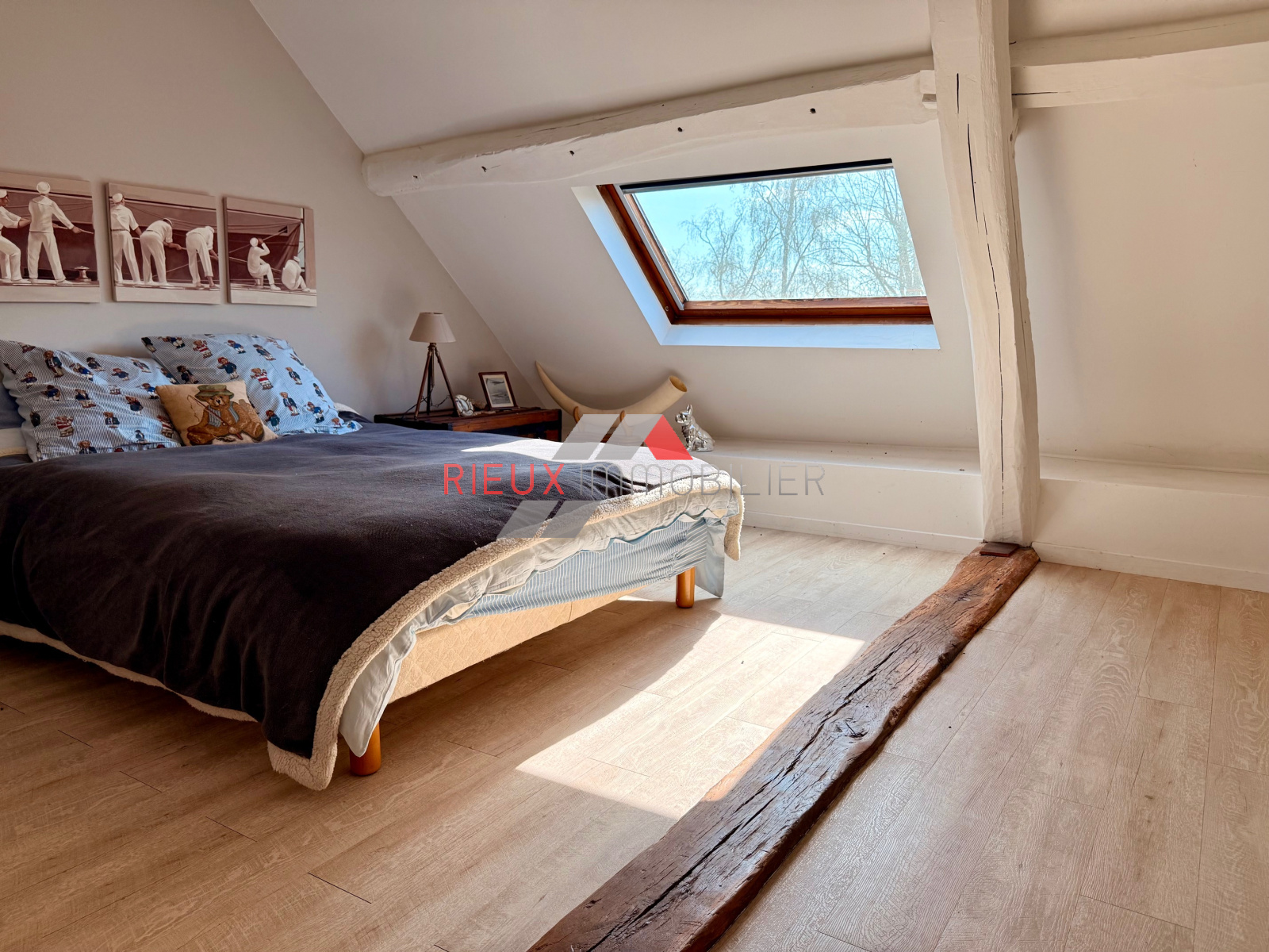 - Au premier étage : un premier palier desservant une salle de bains avec WC suivi d'un dressing, un second palier donnant accès à deux grandes chambres ainsi qu'un WC avec lave mains.