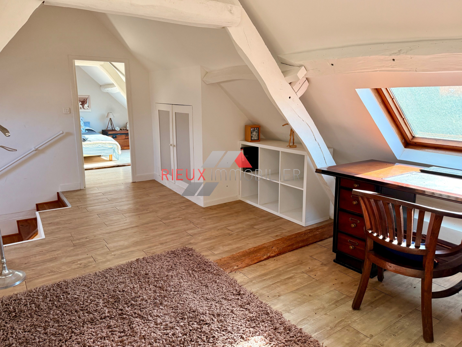 - Au second étage: une chambre et une grande pièce palière pouvant être cloisonné afin de créer une chambre supplémentaire. Chauffage central au gaz de ville.